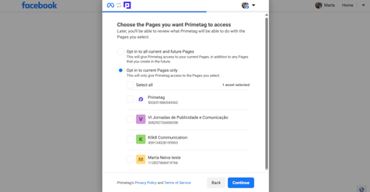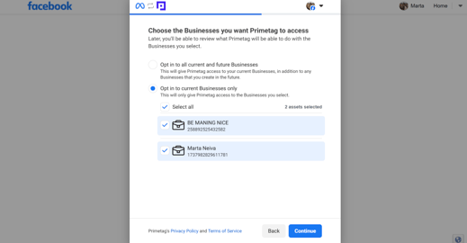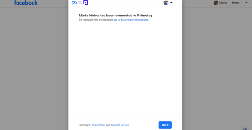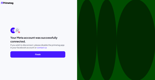 In the end, you’ll be redirected to Primetag and informed that your Meta account is now connected: