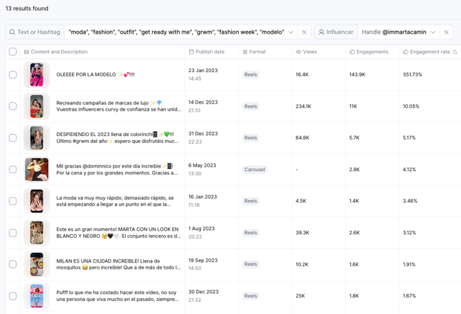 Example: If you’re in the fashion industry, you can use the "Brand Mention" filter to analyze how influencers engage with brands like Zara or H&M.